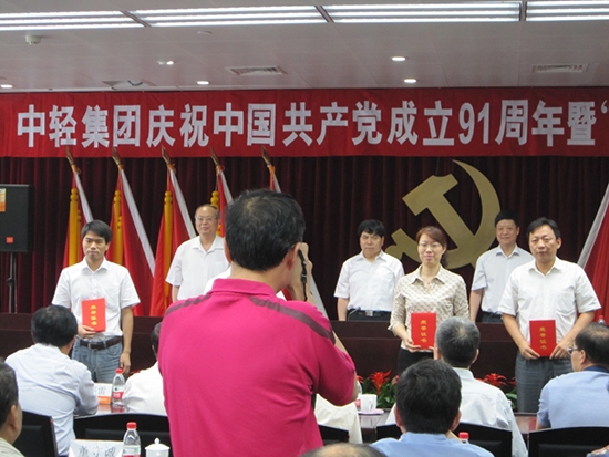2012年6月29日長沙長泰機(jī)械股份有限公司臨時黨委書記、副總經(jīng)理姜賢良,臨時黨委委員、紀(jì)委書記、工會主席陳一平,項目部部長吳又敏同志在中輕集團(tuán)公司總部新址,出席了中輕集團(tuán)慶祝中國共產(chǎn)黨成立91周年暨“一先兩優(yōu)”表彰大會。吳又敏同志被評為中輕集團(tuán)公司2011年度優(yōu)秀黨員,受到中共中輕集團(tuán)公司黨委表彰。