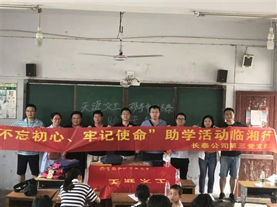 為進一步弘揚社會主義核心價值觀,展現(xiàn)長泰公司黨員守初心、擔使命的社會責任感,公司第三黨支部悉心安排了臨湘愛心助學活動,將公司黨委和黨員同志們的愛心與溫情伴隨著陣陣秋風送至貧困學子手中。