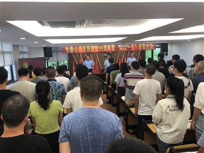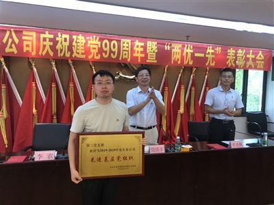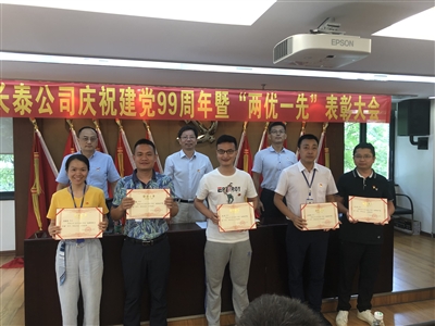 2020年7月1日下午,長泰公司召開慶祝建黨99周年暨“兩優(yōu)一先”表彰大會,通過重溫入黨誓詞、表彰先進、講黨課,進一步動員廣大黨員干部提高認識,統(tǒng)一思想,力爭以高質量黨建推動高質量發(fā)展,推動長泰公司取得新突破。會議由黨委副書記、紀委書記李農主持。