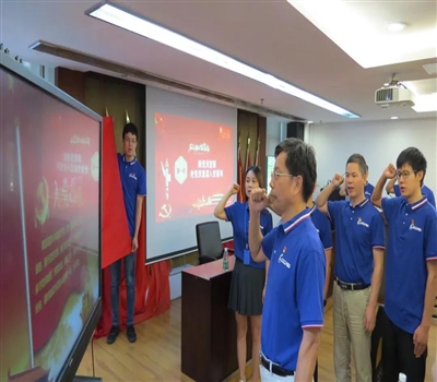 在公司黨委書記、董事長簡澤豐同志的帶領(lǐng)下,黨員們面對鮮紅的黨旗,莊重宣誓:“我志愿加入中國共產(chǎn)黨,擁護(hù)黨的綱領(lǐng),遵守黨的章程,履行黨員義務(wù),執(zhí)行黨的決定,嚴(yán)守黨的紀(jì)律,保守黨的秘密,對黨忠誠,積極工作,為共產(chǎn)主義奮斗終身,隨時準(zhǔn)備為黨和人民犧牲一切,永不叛黨!”莊嚴(yán)肅穆的宣誓活動,使每一位黨員再一次接受了心靈的洗禮。