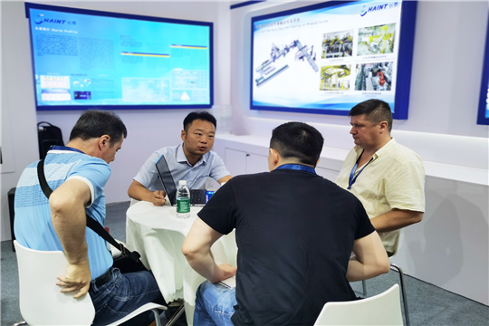 開(kāi)展期間,眾多海外客戶(hù)蒞臨長(zhǎng)泰展位,營(yíng)銷(xiāo)經(jīng)理詳細(xì)介紹了面向非織造行業(yè)的新一代布卷自動(dòng)輸送、包裝、倉(cāng)儲(chǔ)等整體解決方案以及數(shù)字技術(shù),客戶(hù)對(duì)中輕長(zhǎng)泰的數(shù)字化解決方案及創(chuàng)新技術(shù)給予了高度評(píng)價(jià),并表達(dá)了濃厚興趣,紛紛計(jì)劃會(huì)后進(jìn)一步咨詢(xún)洽談。