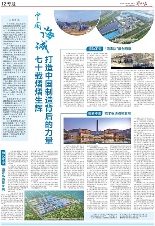 今年,是保利中輕下屬中國海誠成立70周年。10月25日,解放日報專版聚焦中國海誠,刊發(fā)《中國海誠:七十載熠熠生輝 打造中國制造背后的力量》一文,講述七十載奮斗征程上,海誠人始終胸懷“國之大者”,為國家輕工業(yè)發(fā)展作出卓越貢獻的輝煌成就。與大家分享——