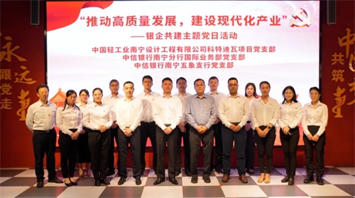 中國(guó)海誠(chéng)南寧公司科特迪瓦項(xiàng)目黨支部與中信銀行南寧分行國(guó)際業(yè)務(wù)部黨支部、中信銀行南寧五象支行黨支部開(kāi)展銀企共建主題黨日活動(dòng)。