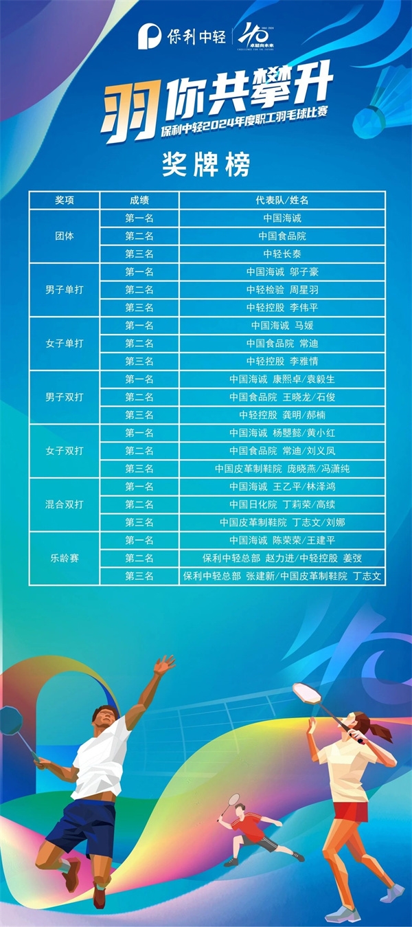 秋風(fēng)送爽,碩果飄香。10月18至19日,“羽”你共攀升—保利中輕2024年度職工羽毛球比賽在雙奧之城北京成功舉辦。