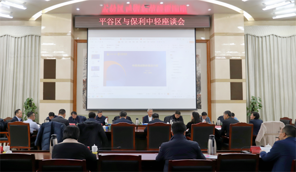 12月2日,保利集團(tuán)總經(jīng)理助理,保利中輕黨委書記、董事長(zhǎng)安勝杰一行與北京市平谷區(qū)委書記唐海龍,區(qū)委副書記、區(qū)長(zhǎng)狄濤等座談交流。保利中輕副總經(jīng)理,中國海誠黨委書記、董事長(zhǎng)趙國昂;保利中輕副總經(jīng)理張曦,中國海誠、中輕長(zhǎng)泰相關(guān)負(fù)責(zé)人,平谷區(qū)政府黨組成員彭石,區(qū)政府相關(guān)部門負(fù)責(zé)人參加座談。