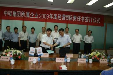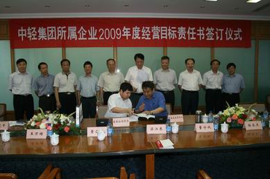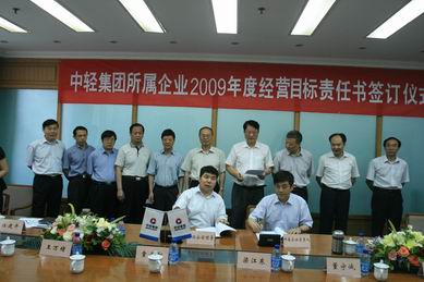 7月16日,中國輕工集團公司所屬二級企業(yè)2009年經(jīng)營目標責任書簽訂儀式在集團總部舉行。集團公司領(lǐng)導、集團公司部門負責人、二級企業(yè)負責人出席了儀式。儀式由集團公司董事長陳學忠主持,陳鄂生總經(jīng)理代表集團公司與所屬10家二級企業(yè)負責人簽訂了2009年度經(jīng)營目標責任書。陳學忠董事長、陳鄂生總經(jīng)理先后在簽字儀式上講話,要求各二級企業(yè)要認真分析金融危機對企業(yè)帶來的影響,找準問題,制定切實可行的辦法,力保全年任務的完成,為重組后新集團的快速發(fā)展打好基礎(chǔ)。