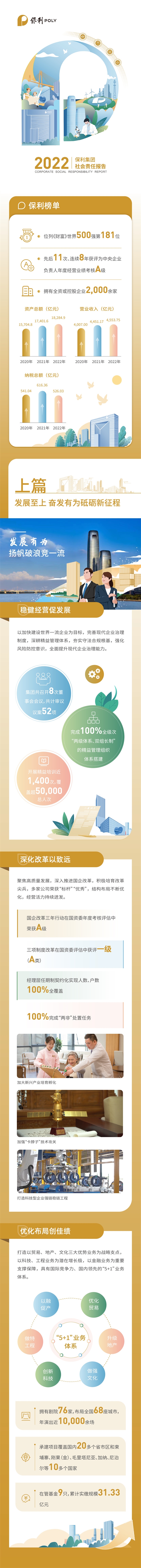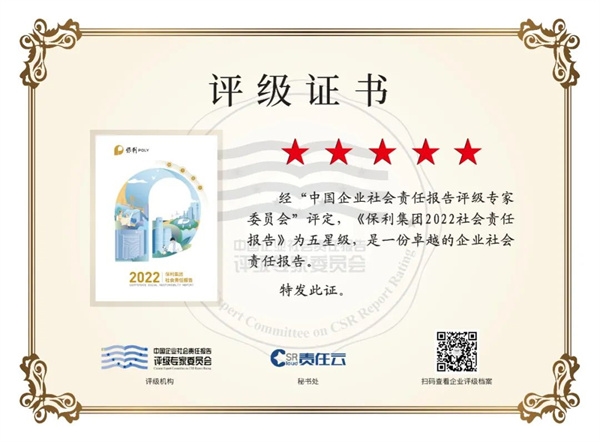 近日,保利集團(tuán)發(fā)布2022社會責(zé)任報告,并獲中國企業(yè)社會責(zé)任報告評級專家委員會五星評級。報告解讀改革發(fā)展、科技創(chuàng)新、生態(tài)治理、保障民生等領(lǐng)域的履責(zé)效能,向社會各界展現(xiàn)出保利以擔(dān)當(dāng)致美好的堅實步伐。