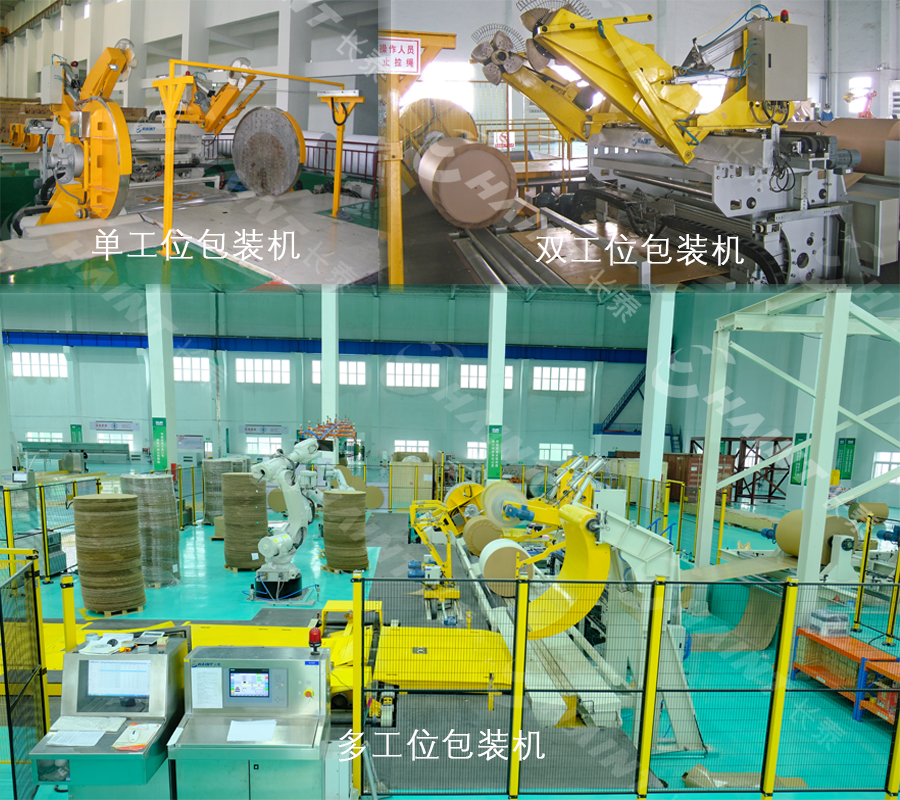 主要用于紙卷的牛皮紙包裝,包含對中、內(nèi)外封頭放置、牛皮紙包裝、熱壓合等功能。適用于各類文化紙、白卡紙、特種紙等紙種。